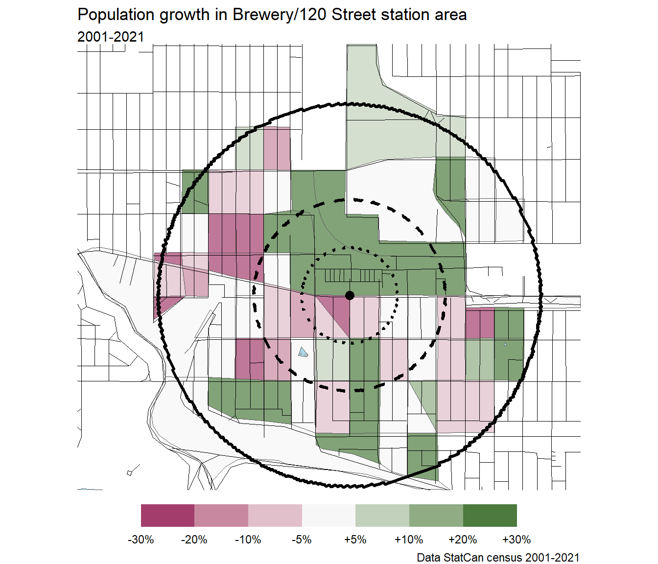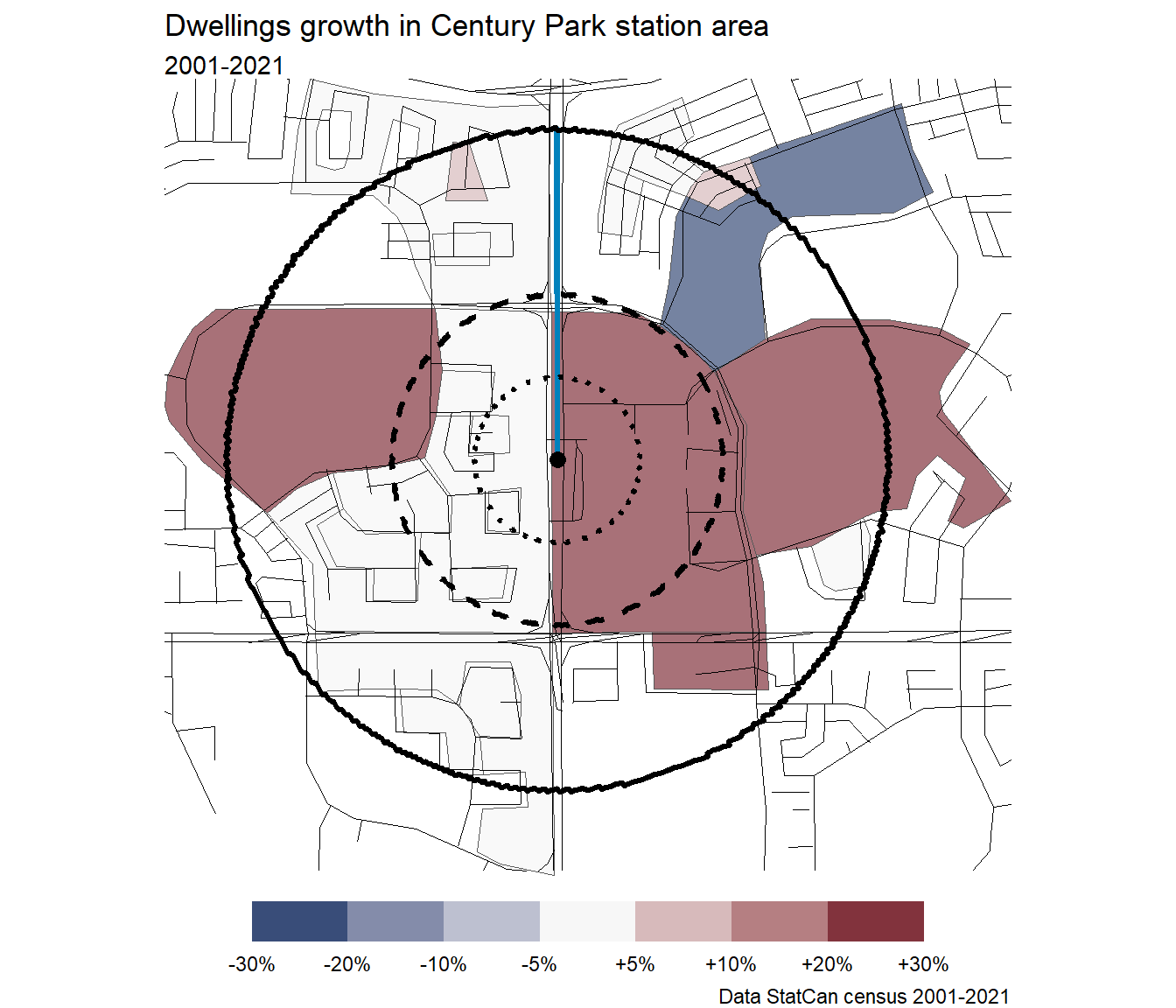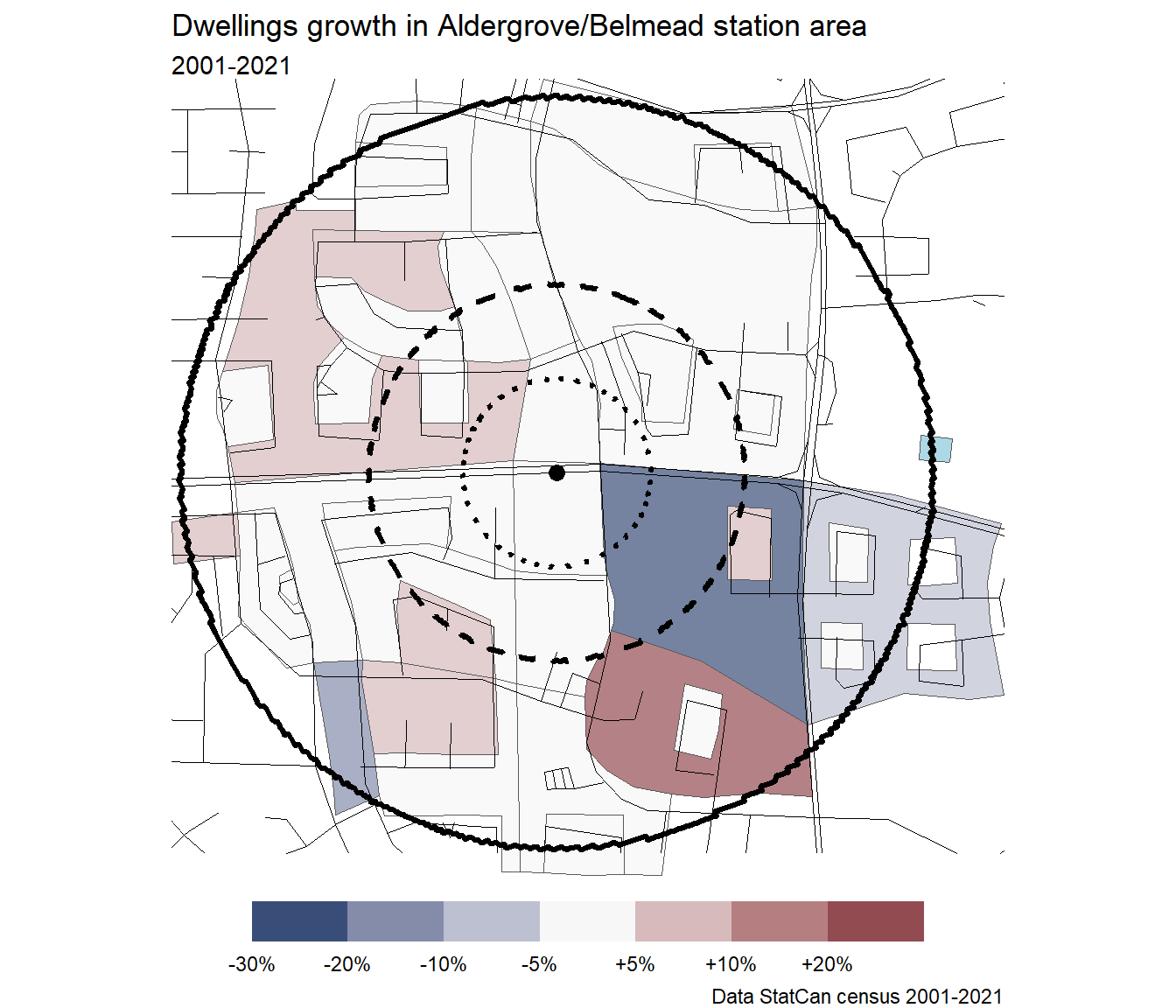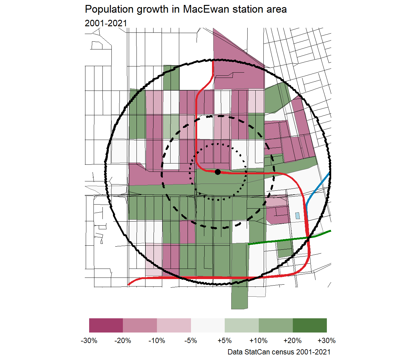 Because Lewis Farms has so little residential, there are no dissemination blocks included in the station area. The census plots cannot be generated.